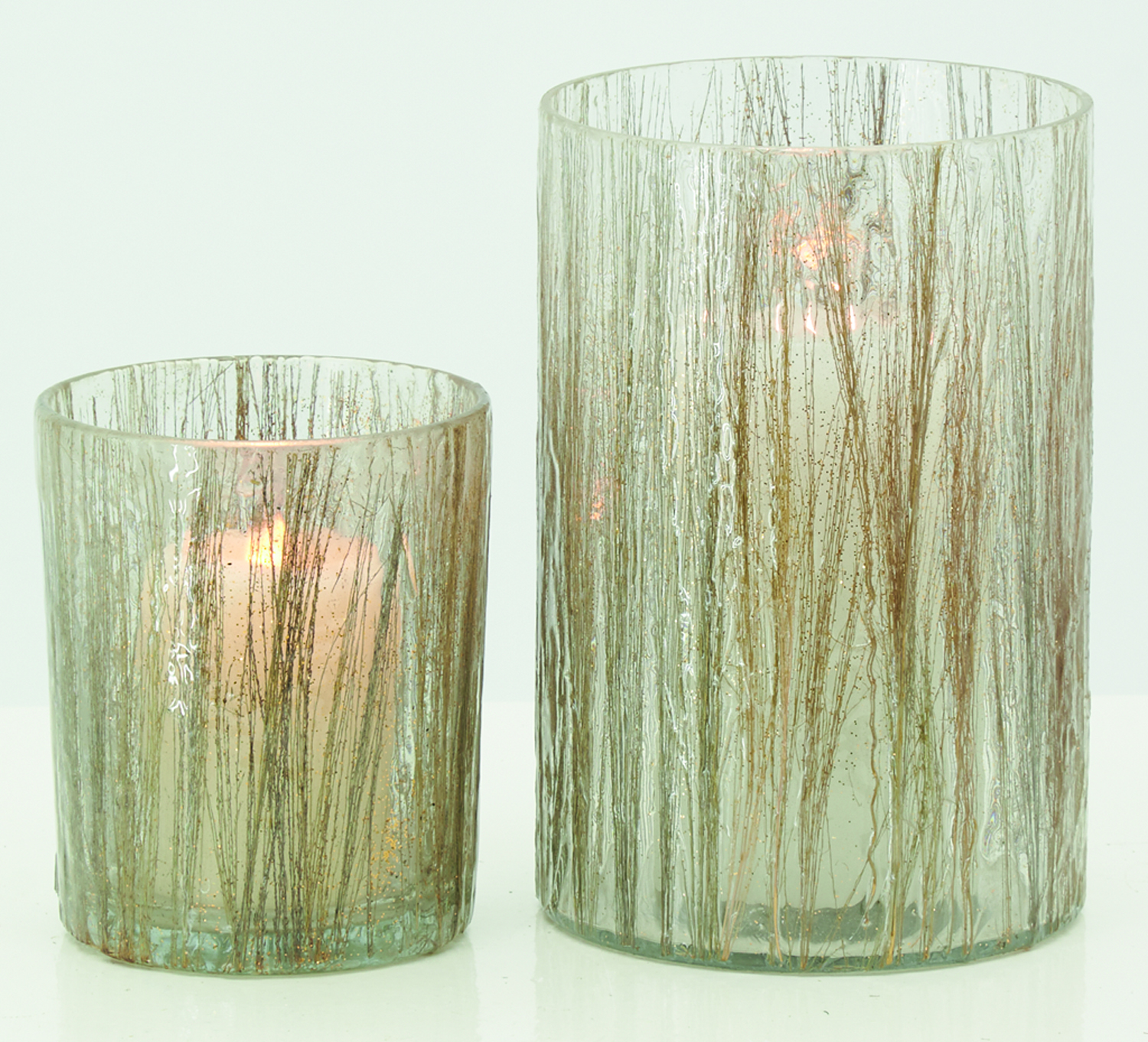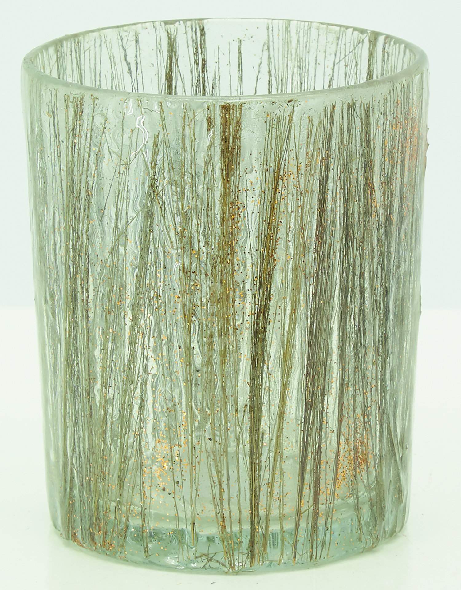 Photophore en verre teinté décor herbes or, il sera idéal pour créer une petite lumière confortable partout où vous le souhaitez.