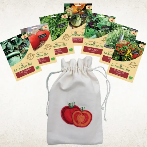 Le pochon « Tous au balcon ! » contient 7 sachets de graines. Ils vous permettent de cultiver des variétés soigneusement sélectionnées pour leur qualité et leur authenticité !