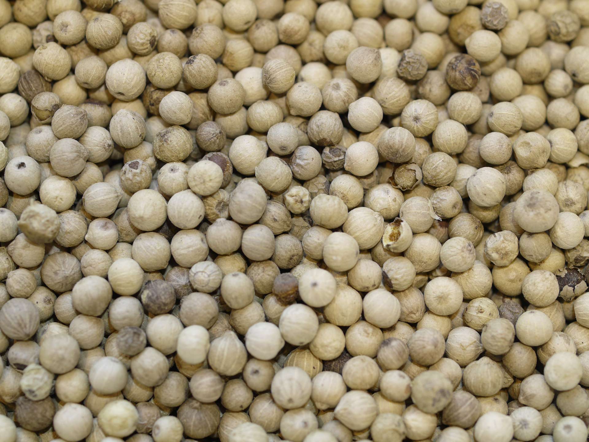 Sur l’île de Bangka, en Indonésie, les grains de poivre mûr sont trempés dans des barils d’eau froide jusqu’à ce que la coque (péricarpe) se détache et soit retiré. De couleur crème pâle à beige clair il sont plus petits que les grains de poivre de Sarawak. Un arôme légèrement moisi, chaud avec un goût légèrement fermenté.