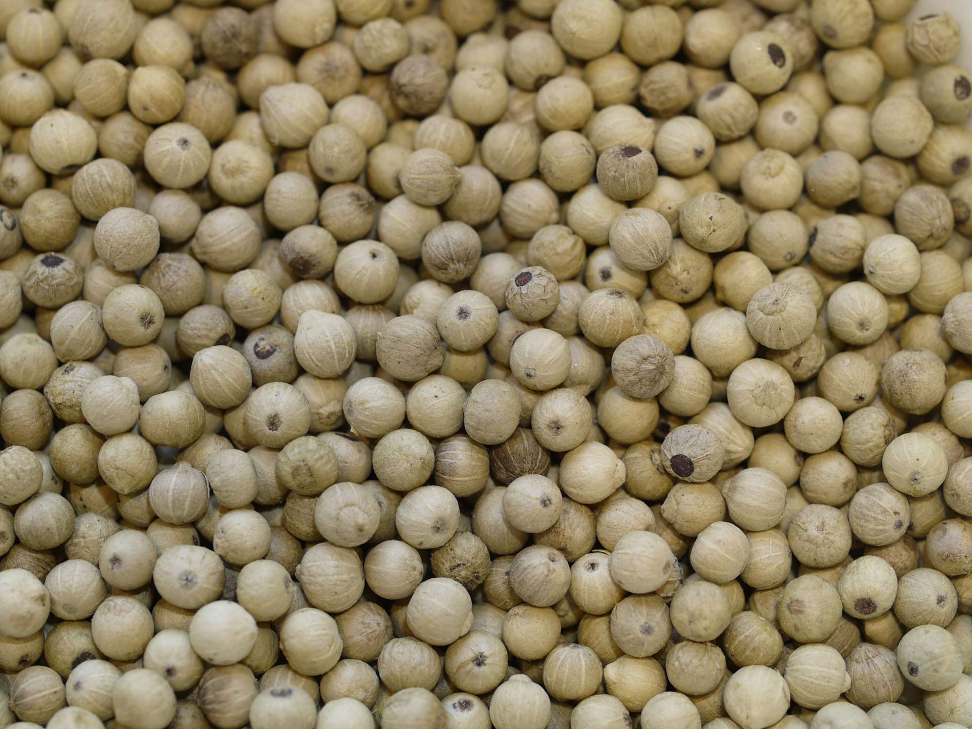 Longtemps considéré comme étant le nec plus ultra des poivres blancs les grains de poivre Sarawak sont très propres et de couleur crème, cultivés dans de petites parcelles de montagne par des membres de la tribu des Bidayuh. Les baies de poivre sont cueillies à la main lorsqu’elles sont mûres et lavées à l’eau de source fraîche pendant une quinzaine de jours. Après séchage, ils sont triés pour éliminer les morceaux de couleur foncée et soumis à des tests de laboratoire pour détecter la présence de microbes avant de recevoir la plus haute désignation gouvernementale, « Sarawak Cream Label ». Grains de couleur variée, plutôt crème.