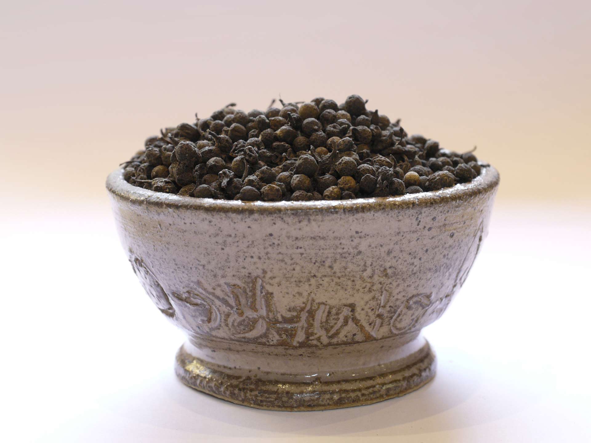 Concassé, pilé ou moulu ce poivre de centrafrique parfume à merveille légumes et viandes; il est à la frontière gustative du poivre sauvage de Madagascar (Voatsiperifery) et du poivre des Moines.