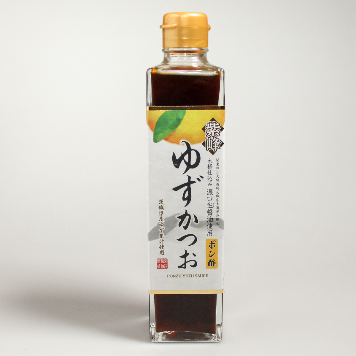 Sauce soja (48,1%), eau (20,98%), sirop de glucose-fructose (11,72%), vinaigre (11,71%), jus de yuzu (4,65%), exhausteurs de goût (E621, E635, E631, E627) (1,63%), assaisonnement à la bonite séchée (thon listao) (0,46%), extrait de levure (0,56%), jus de citron (0,19%).