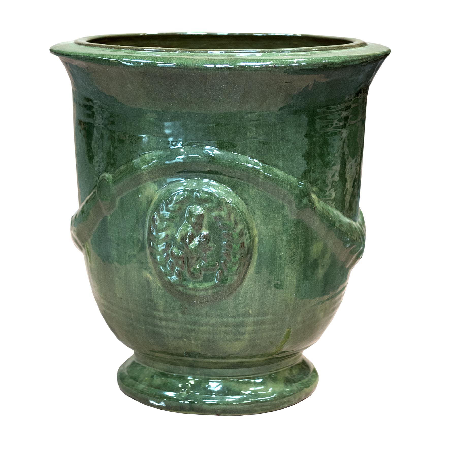 Pot Costa Vase sur pied émaillé vert, résistant aux UV et percé, il est à la fois utile et esthétique. Une création artisanale et authentique respectant les traditions et le prestige de ces vases d’origine du Sud de la France. Ce type de vase est directement inspiré des vases Médicis.