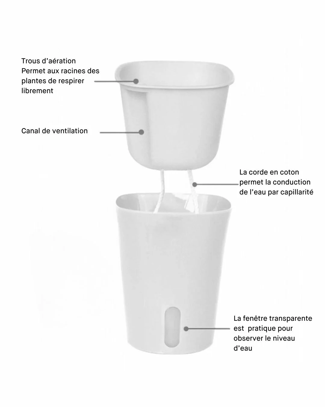 Pot pour l’Hydroponie à réserve d’eau avec mèche