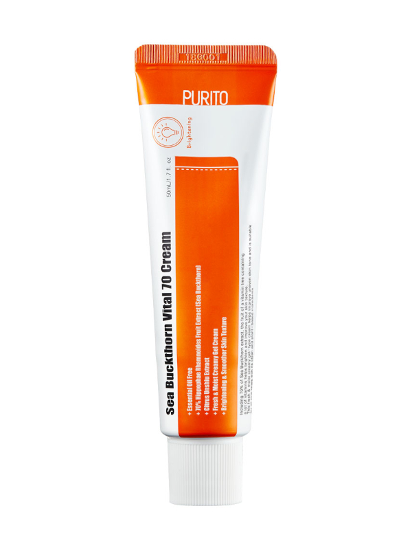 La crème PURITO Sea Buckthorn Vital 70 aide à éclaircir la peau et à affiner la structure
