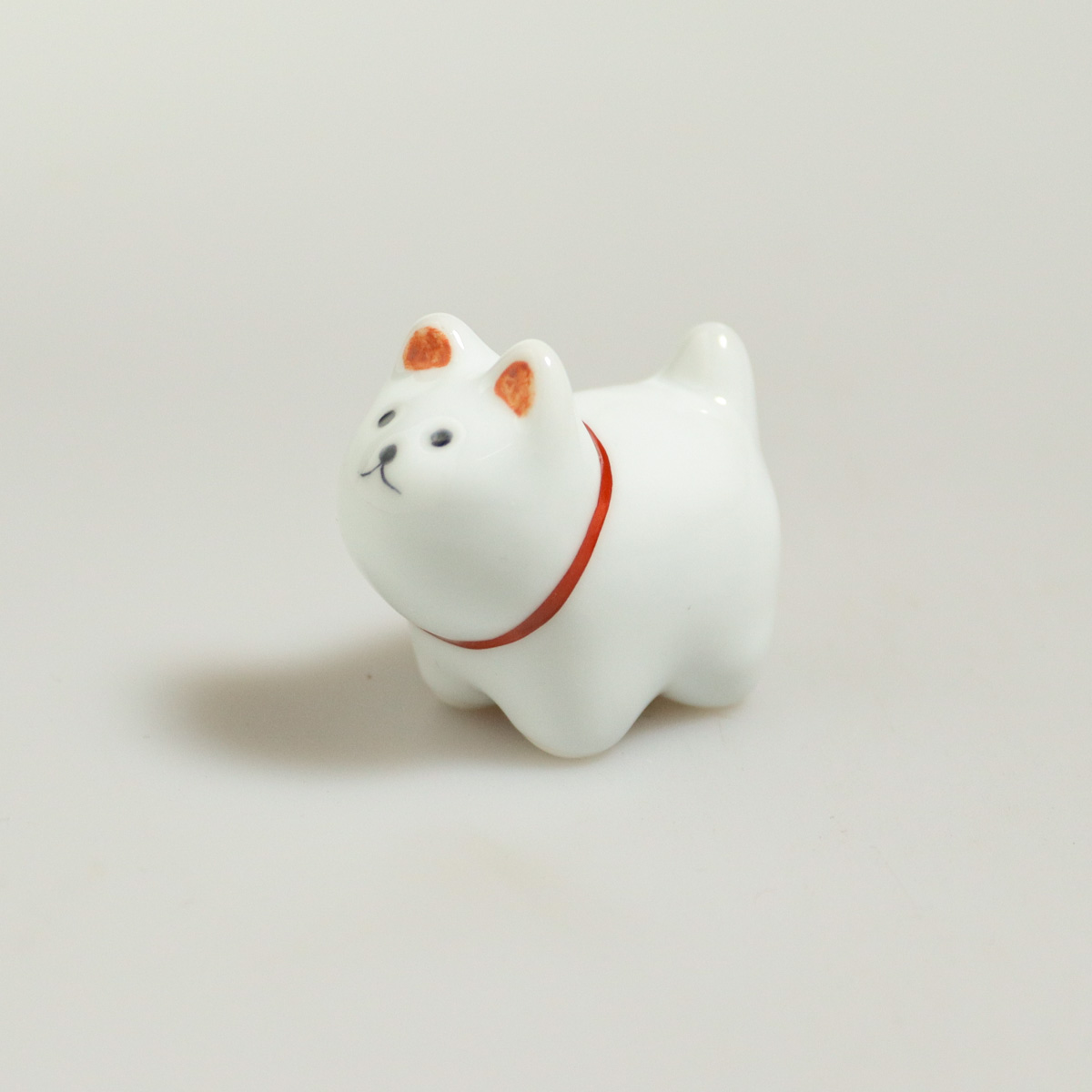 Repose baguette chien en porcelaine de Hasami. Existe en collier rouge et bleu.