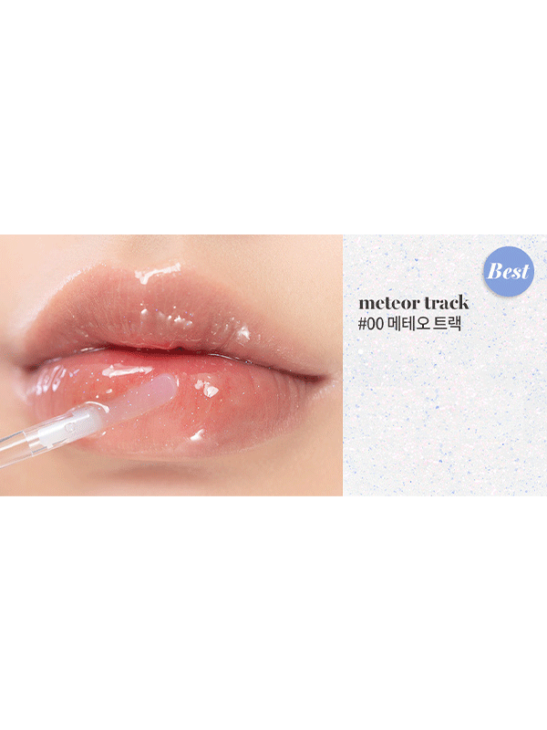 ROMAND Glasting Water Gloss Gloss 00 Meteor Track donne aux lèvres un éclat particulier, comme de l’eau scintillante au soleil ou au clair de lune.