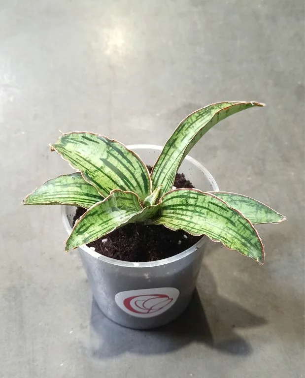 La Sansevieria Kirkii Cleopatra est une variété botanique rare, précieuse et résolument graphique. Elle fait partie de la grande famille des Asparagaceae, qui regroupe des plantes robustes et élégantes.