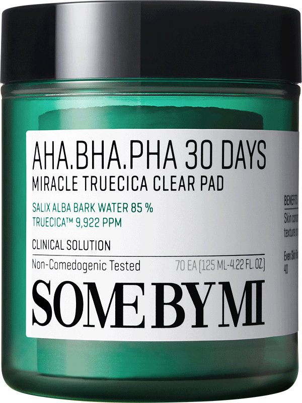 SOMEBYMI AHA-BHA-PHA 30 days Miracle Truecica Clear Pad sont des disques exfoliants conçus pour clarifier et apaiser la peau en 30 jours. En combinant AHA, BHA et PHA, ils éliminent les cellules mortes, débouchent les pores et favorisent le renouvellement cellulaire. Enrichis en Truecica, ils apaisent, réduisent les inflammations et renforcent la barrière cutanée, laissant la peau plus lisse et lumineuse.