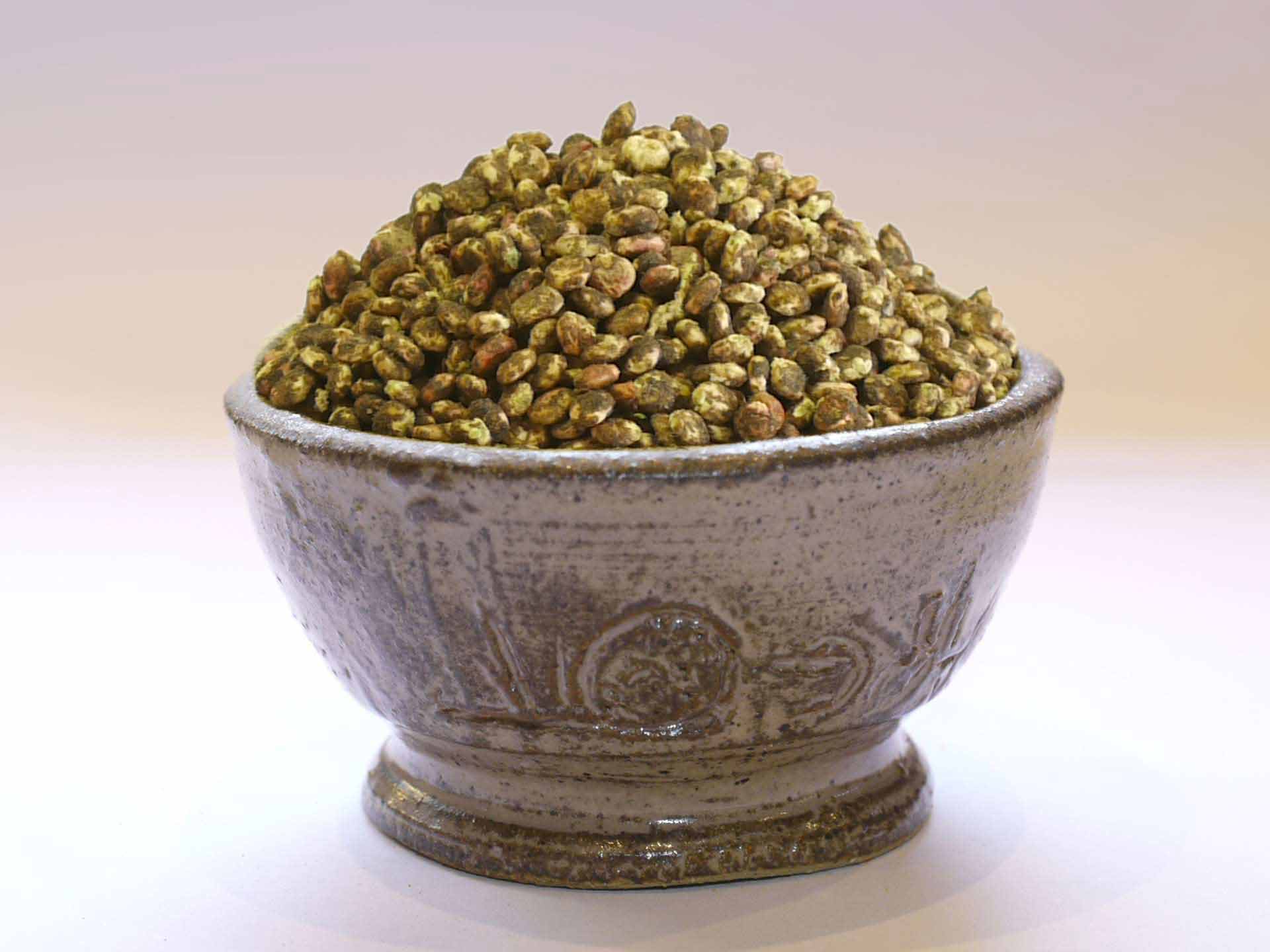 Les graines de sumac sont récoltées à partir des fruits de l’arbuste sumac (rus). Une fois récoltées, les graines sont séchées puis broyées pour obtenir une poudre assez fine ou sont utilisées entières (comme ici) pour conserver toute leur saveur naturelle.