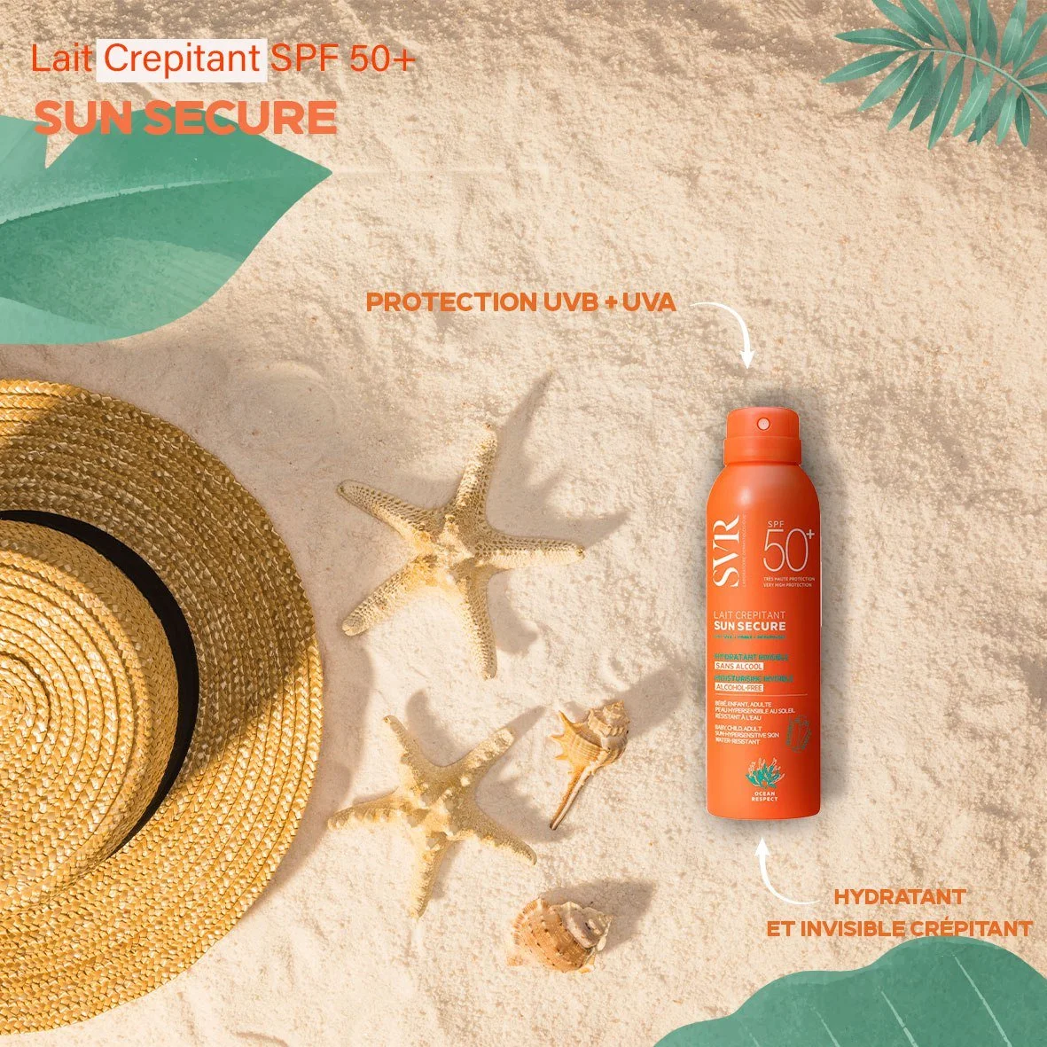 SVR Sun Secure Lait Crepitant SPF 50+ | Hydratant invisible – Bébé, Enfant, Adulte