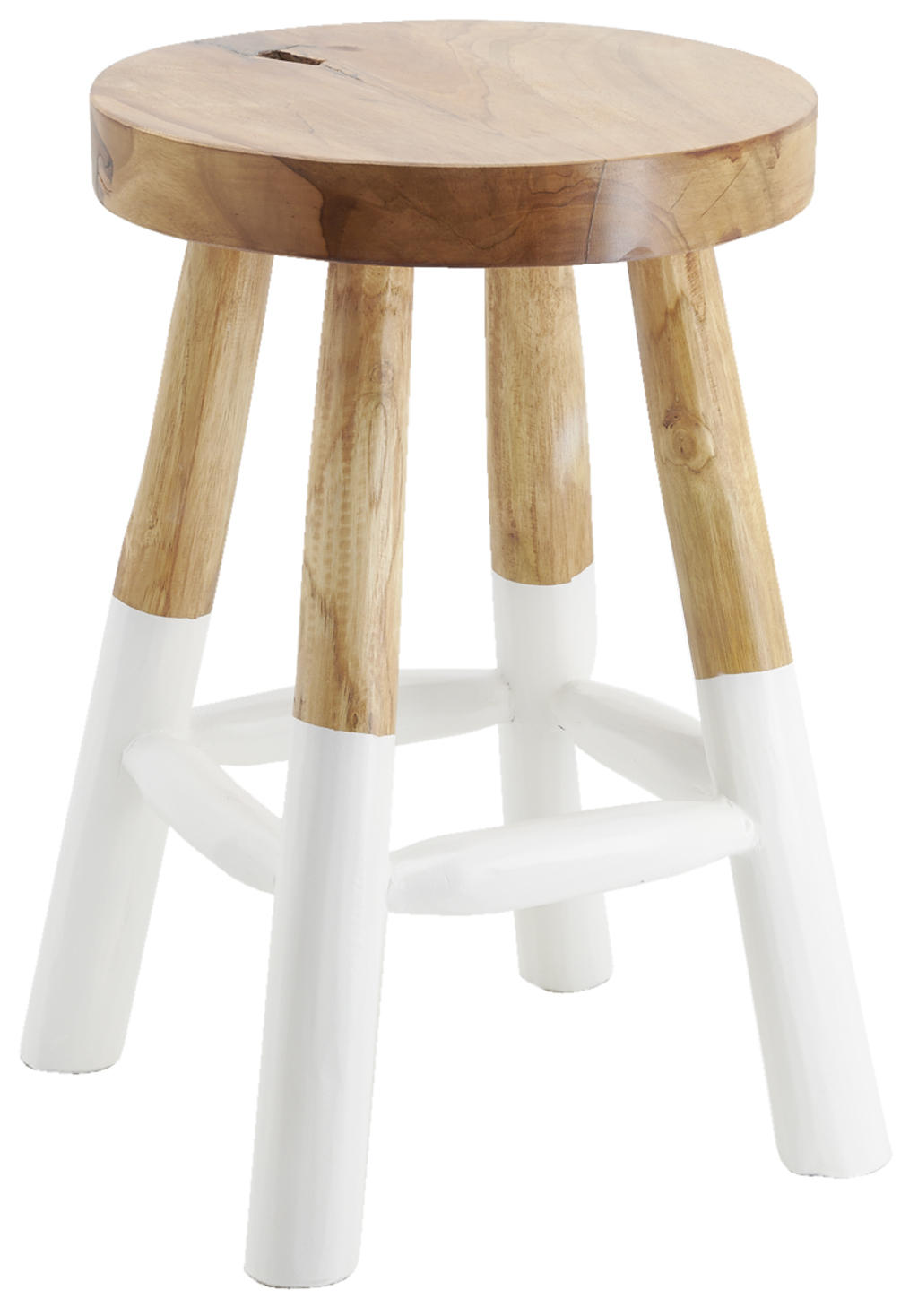 Le tabouret en Teck naturel et teinté blanc est un meuble au style classique et naturel, idéal pour un intérieur bohème.