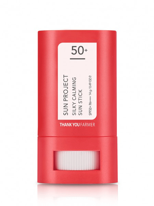 THANK YOU FARMER Sun Project Silky Calming Sun Stick est un stick solaire apaisant, soyeux, durable et imperméable vous laisse une sensation de fraîcheur tout en bloquant de manière fiable les rayons UV nocifs. Le stick peut être facilement dévissé selon les besoins afin que la crème solaire puisse être appliquée directement sur le visage. Le stick est donc parfait pour les déplacements et pour renouveler la crème solaire.