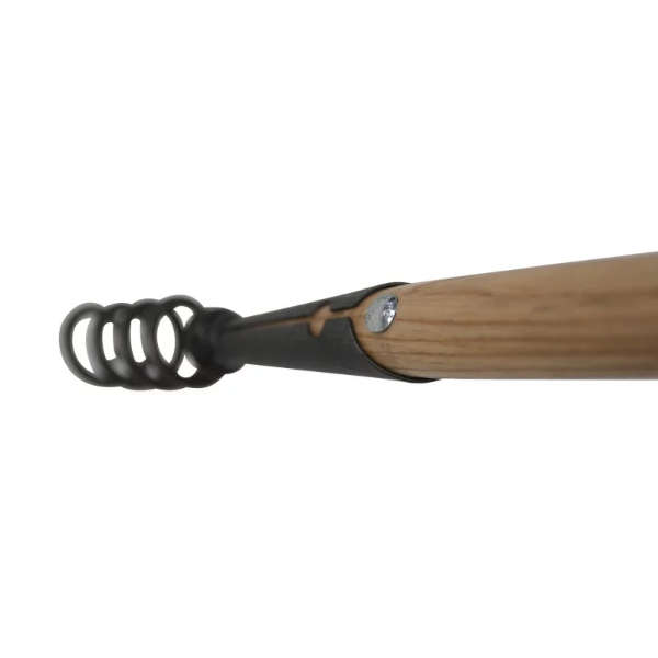 Le tire-racines possède un manche en bois en frêne avec une poignée « en T » de 14 cm de largeur. Cela permet une très bonne prise main, notamment au moment de la rotation.