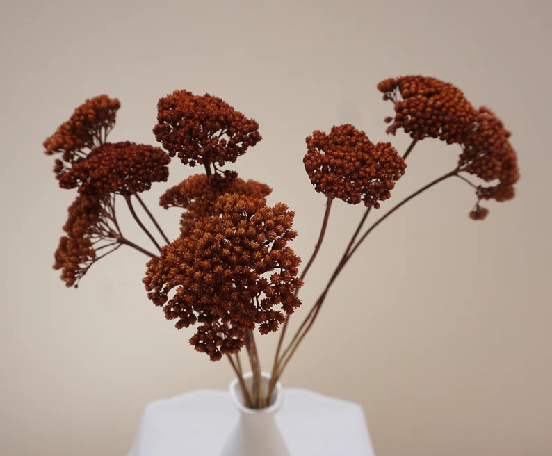 Fleur séchée idéale pour les bouquets en hauteur l’Achillea propose de très jolies petites ombelles qui s’harmoniseront à merveille dans vos créations aux tendances naturelles et bohèmes.