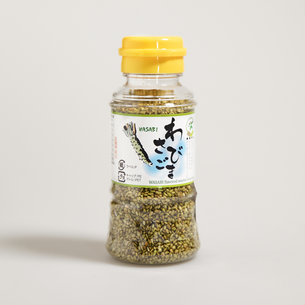 Wasabi Roasted Sesame comes in 80g plastic bottles. It’s not too salty and its strong flavor is a delight. This product is also available in bulk in our grocery store.